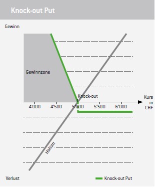 Das Knock-out-Produkt würde allerdings vorzeitig verfallen, wenn der Aktienkurs von Holcim die Knock-out-Schwelle von 50 CHF berühren oder unterschreiten würde. Faktisch wäre das Produkt dann wertlos.