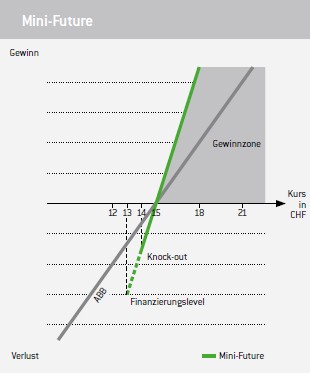 Mit über 600 gelisteten Produkten werden die Mini-Futures immer beliebter in der Schweiz. Mini- Futures weisen gegenüber Warrants die gleichen Besonderheiten wie Knock-out-Produkte auf. Mini-Futures sind Open-End-Produkte und weisen damit eine unbegrenzte Laufzeit auf. Kommt es zu einer Berührung bzw. Überschreitung der Knockout- Schwelle, wird das Produkt ausgeknockt und vom Emittenten glattgestellt. Der Investor erhält in einem solchen Fall dann noch den Restwert ausbezahlt.