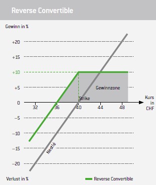 Reverse Convertibles zählen in der Schweiz zu den beliebtesten Renditeoptimierungs-Produkten und eignen sich vor allem für Anleger, die seitwärts tendierende oder leicht steigende Märkte erwarten. Der ökonomische Gehalt von Reverse Convertibles entspricht exakt demjenigen von Discount-Zertifikaten. Anders als bei Discount-Zertifikaten erhält der Anleger von Reverse Convertibles schon während der Laufzeit Zuflüsse in Form von Coupons.