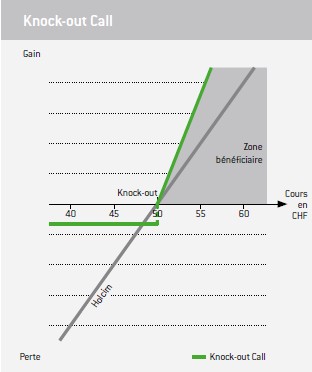 Cependant, ce produit Knock-out arriverait prématurément à échéance si le cours de l’action Holcim N atteignait ou franchissait la barrière knock-out de 50 CHF. Le produit serait alors sans valeur.